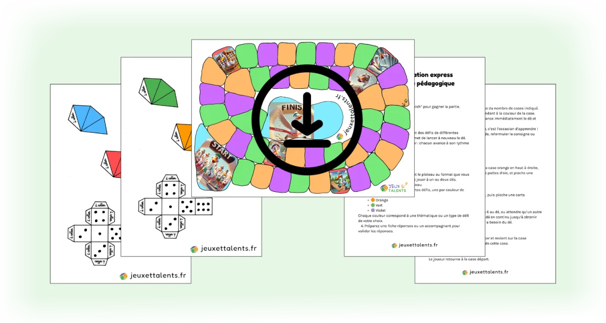 ✅ Les Dés & Pions Imprimables : Des pions colorés et un dé à fabriquer en un clin d’œil pour commencer à jouer immédiatement, même sans matériel.